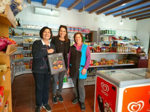 Zaragoza, 2 de diciembre de 2024. Continúa la campaña de Aragón Alimentos Nobles de Aragón Alimentos en los multiservicios rurales, campaña apoyada por la Cámara de Comercio de Zaragoza. La jefa del servicio de Comercio y Turismo de la Cámara de Zaragoza, Natalia García, viajó hasta Jaulín y Moyuela para hacer entrega de un par de lotes con productos de Aragón a los ganadores.
