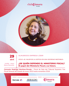 El ciclo continuará con una sesión conjunta protagonizada por Consuelo Madrigal Martínez-Pereda, fiscal de Sala del Tribunal Supremo. Fue fiscal general del Estado entre 2015 y 2016 y cuenta con una extensa carrera en el Ministerio Fiscal, con especial reconocimiento por su trayectoria en el ámbito constitucional y su participación en órganos de relevancia institucional.  Su intervención permitirá reflexionar sobre esta institución.