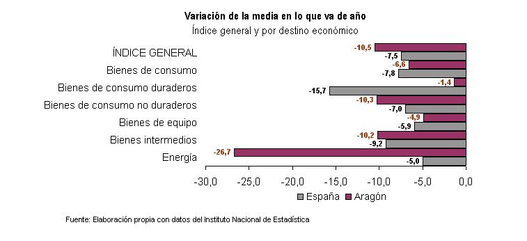 Por destino económico de los bienes esta tasa es negativa en todos los sectores. Los que experimentaron una mayor caída:
