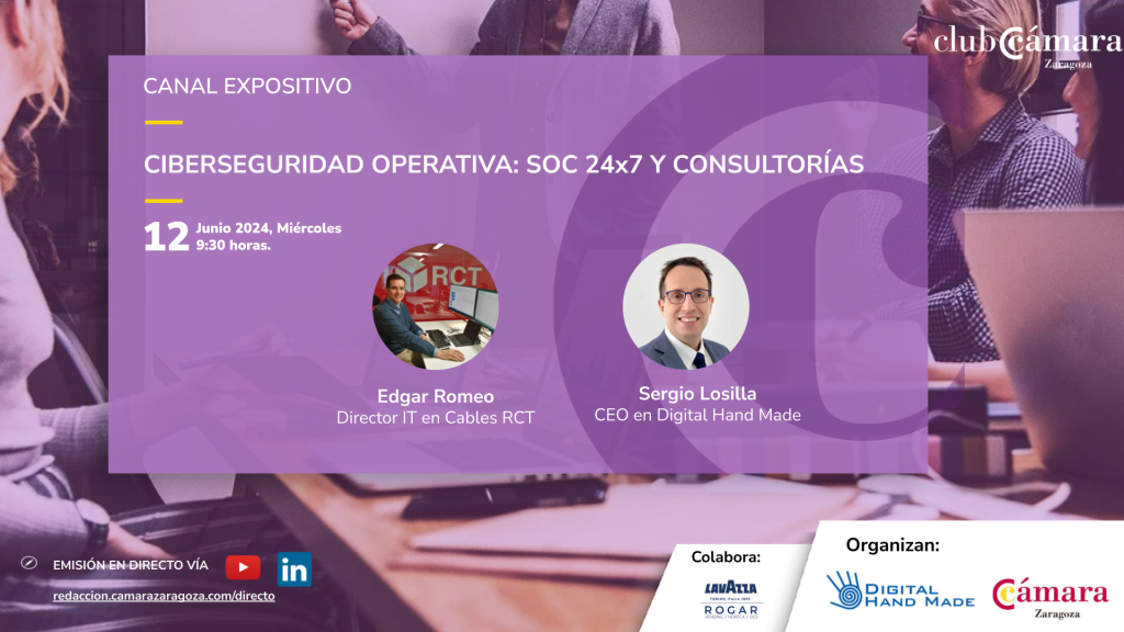 Cada uno en su ámbito, como interesados en especialistas en ciberseguridad empresariales, Digital Hand Made y Cámara de Comercio presentamos esta jornada que pretende ser un foro de encuentro y seguimiento en la concienciación entre los responsables IT de las organizaciones aragonesas.