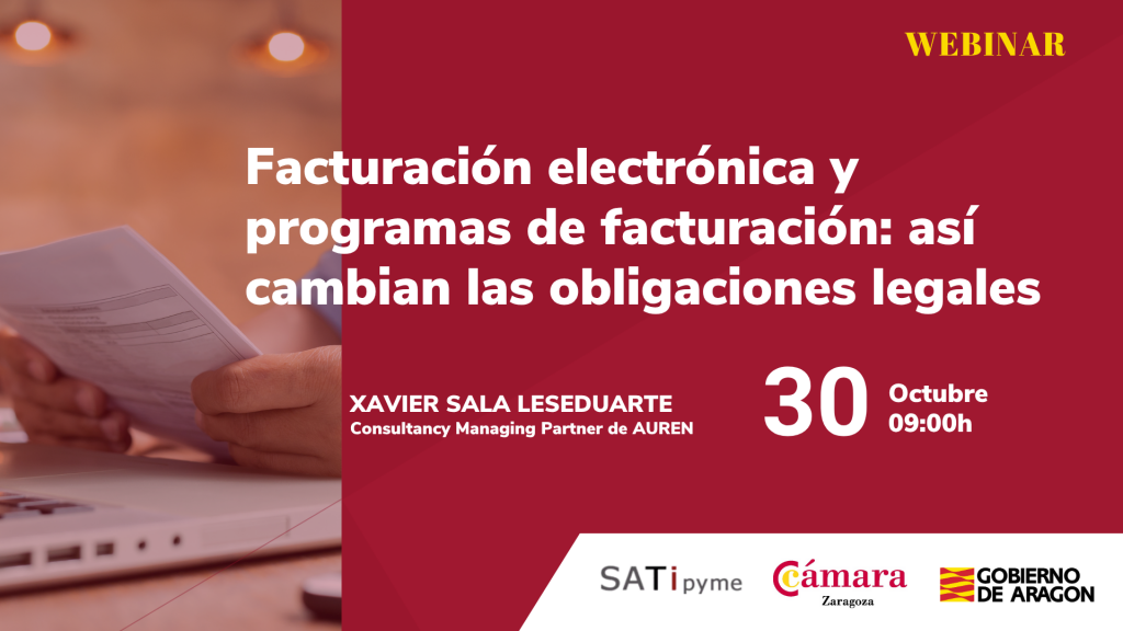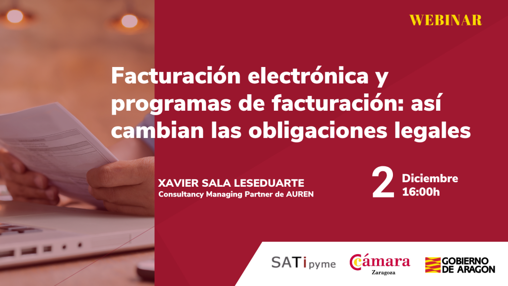 Cámara Zaragoza organiza una jornada en el marco del Convenio SATIPYME sobre las implicaciones de los cambios legales que próximamente se producirán en el ámbito de la facturación y que afectarán a empresas, pymes y autónomos.