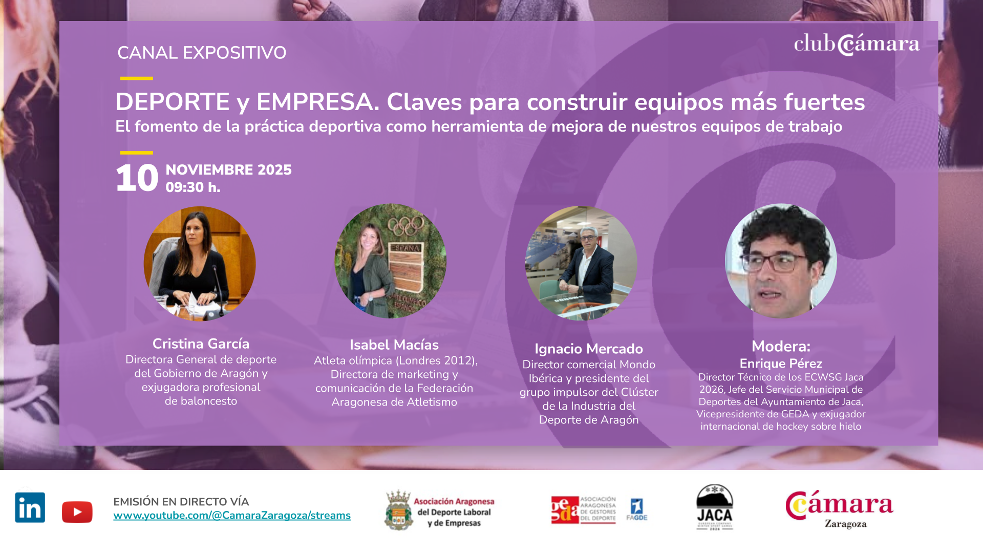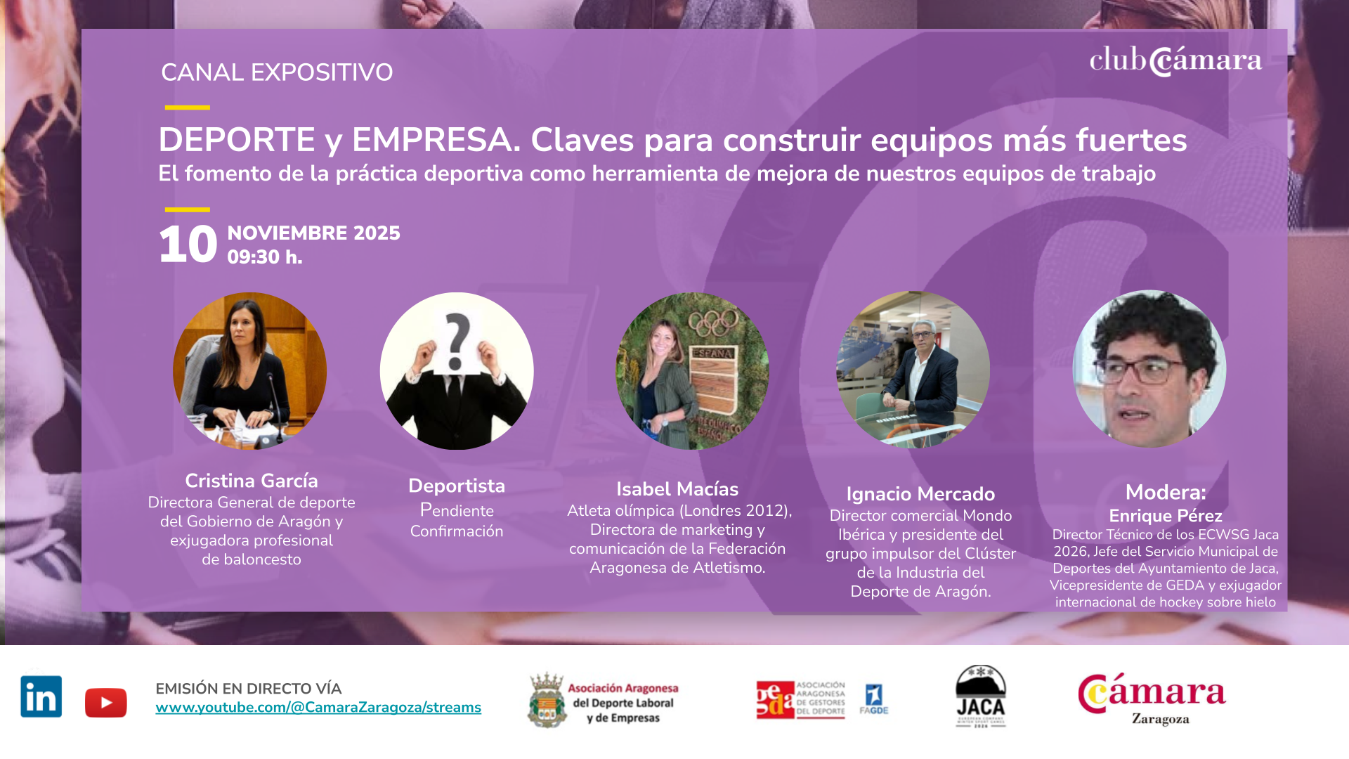 - Isabel Macias, atleta olímpica (Londres 2012), directora de marketing y comunicación de la Federación Aragonesa de Atletismo.