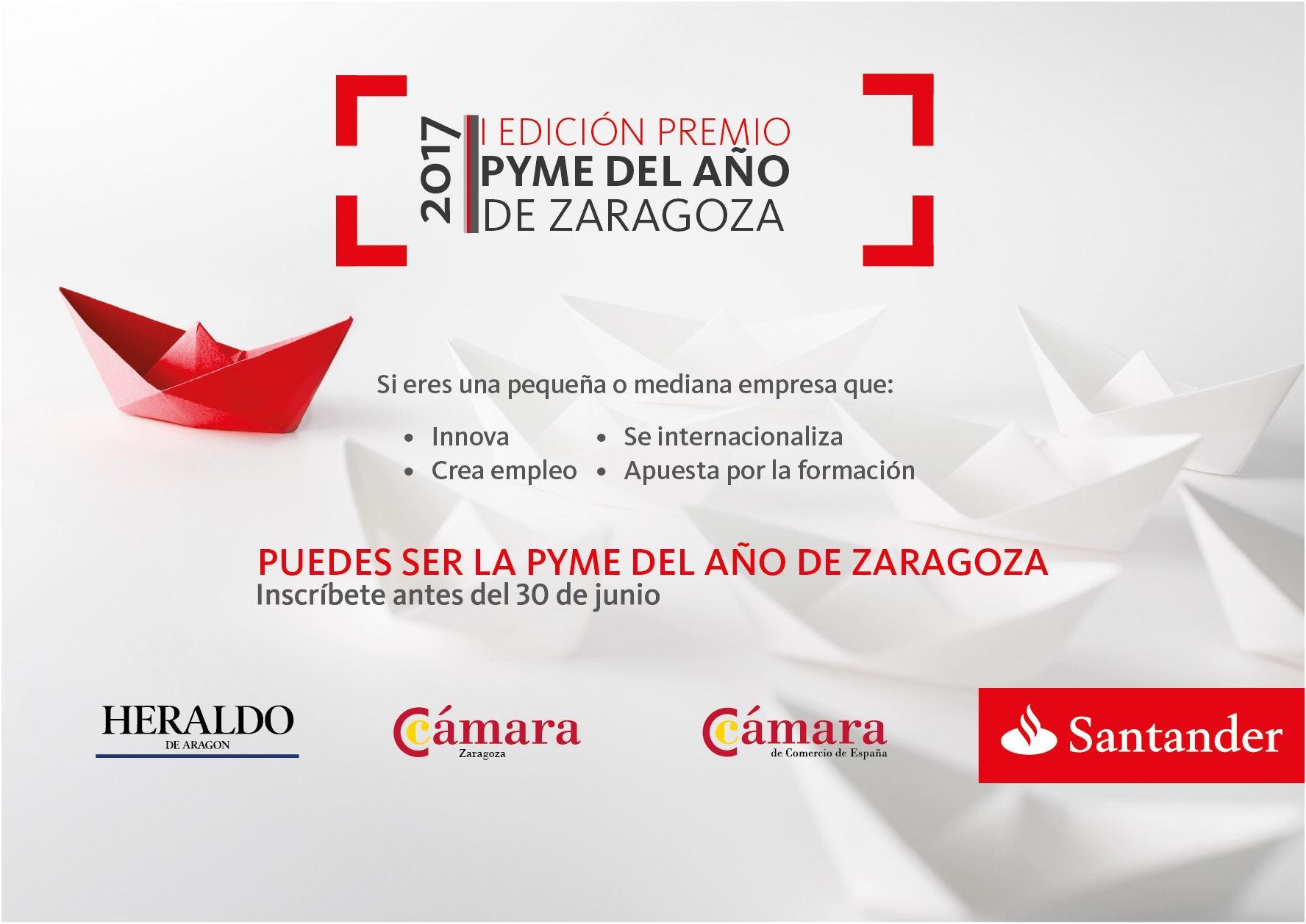 Al Premio Pyme del Año 2017 de Zaragoza podrán concurrir todas las pequeñas y medianas empresas de menos de 250 empleados, con una facturación anual inferior a los 50 millones de euros en el ejercicio 2016 y con sede social en la provincia de Zaragoza. El plazo de presentación de candidaturas se abre el 23 de mayo y termina el 15 de julio.