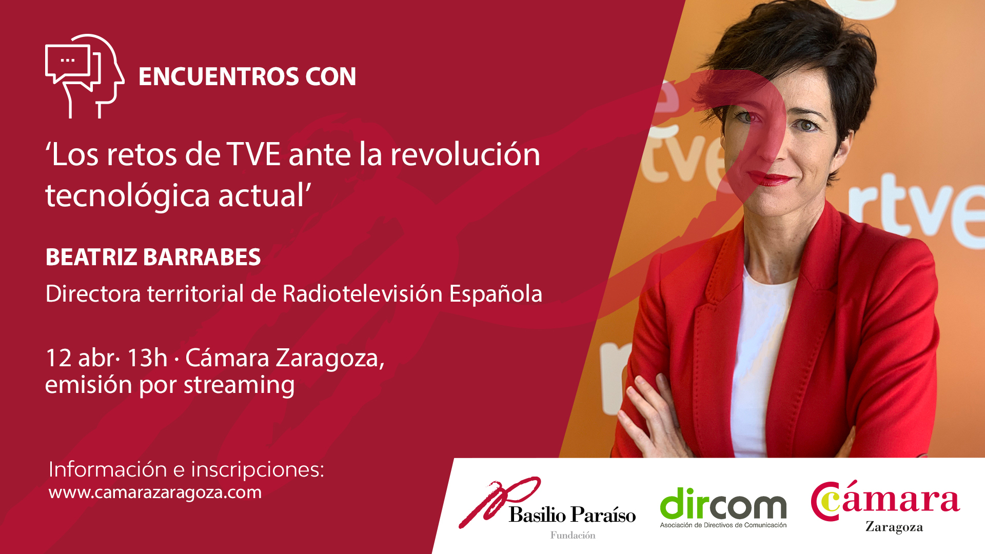 El próximo ‘Encuentros con’ de la Fundación Basilio Paraíso de Cámara Zaragoza, cuenta con la presencia de Beatriz Barrabés, Directora territorial de Radiotelevisión Española, que hablará de los retos a los que se enfrenta la televisión pública debido a la revolución tecnológica actual.