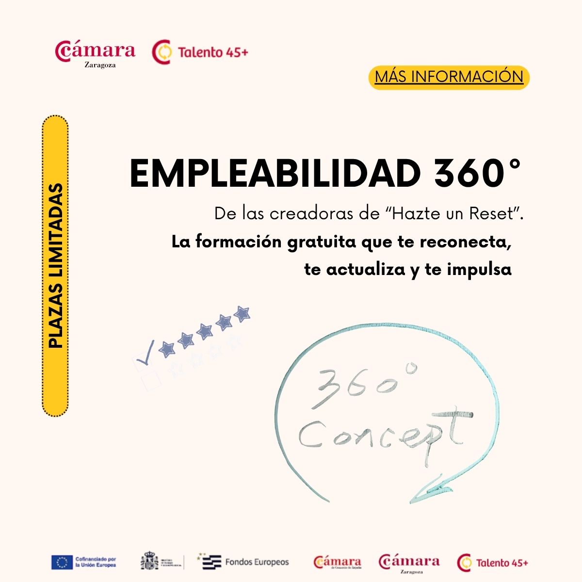Todas las acciones del programa —orientación, formación y acompañamiento— son GRATUITAS para las personas participantes y compatibles con otros programas de empleo, al ser iniciativas propias de la Cámara de Comercio.